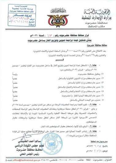 أصدر عضو مجلس القيادة الرئاسي محافظ حضرموت الاستاذ سالم احمد الخنبشي، اليوم، القرار رقم (43) لسنة 20...