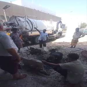 مؤسسة مياه عدن تنفذ حملة فتح انسدادات وتصفية شبكة الصرف الصحي بحي السفارات بخور مكسر