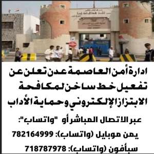 ادارة أمن العاصمة عدن تعلن عن تفعيل خط ساخن لمكافحة الابتزاز الإلكتروني
