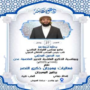 دعوة عامة للمشاركة في الإفطار الجماعي بساحة العروض إحياءً للذكرى العاشرة لتحرير عدن