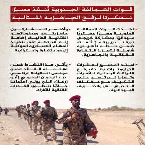 قوات العمالقة الجنوبية تُنفّذ مسيرًا عسكريًّا لرفع الجاهزية القتالية للمتخرجين من دورة تأهيلية
