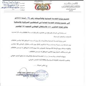 الخدمة المدنية تعلن الأحد القادم إجازة رسمية بمناسبة العيد الـ57 للاستقلال الوطني