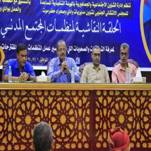 انتقالي وادي وصحراء حضرموت ينظم حلقة نقاشية لمنظمات المجتمع المدني بالمحافظة