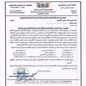 البنك المركزي يصدر تعميم بحظر التعامل مع المحافظ وخدمات الدفع الإلكتروني غير المرخصة (وثيقة)