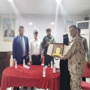 القيادة العامة لقوات الأحزمة الأمنية تكرم الدكتور عارف الداعري بدرع التميز