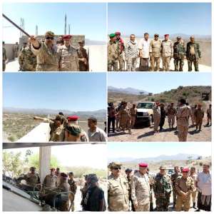 قيادات من وزارة الدفاع تزور جبهات القتال في شمال وغرب الضالع لتهنئة المرابطين بمناسبة عيد الفطر المبارك