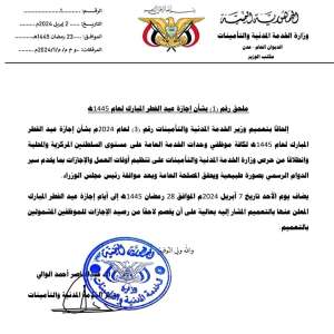 الخدمة المدنية تعلن موعد بدء إجازة عيد الفطر المبارك للعام 1445هـ