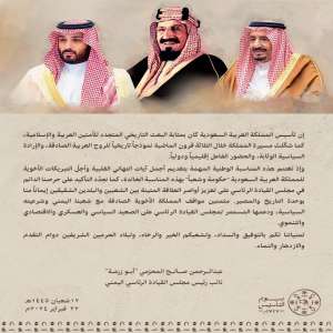 الرئيس الزُبيدي يُهنئ خادم الحرمين الشريفين وولي عهده بيوم التأسيس