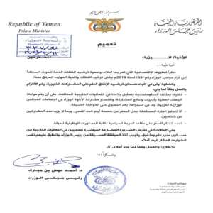وزير النقل يعلن بأسم الوزارة والهيئات والمؤسسات والشركات التابعة لها تأييد كافة القرارات والخطوات التي اتخذها الرئيس القائد المناضل عيدروس بن قاسم الزبيدي