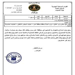 تعميم هام للقوات الجنوبية بشأن حمل السلاح في عدن على المدنيين والعسكريين