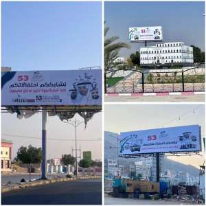 تشييد لوحات عملاقة في المكلا وعدد من مديريات حضرموت بمناسبة العيد الوطني الاماراتي 53