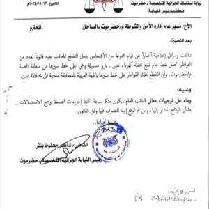 جزائية حضرموت توجه بضبط المتقطعين لقواطر نقل النفط الخام لكهرباء عدن