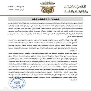 وزارة الأوقاف تفند ماورد من مزاعم باطلة في بعض صفحات التواصل الاجتماعي