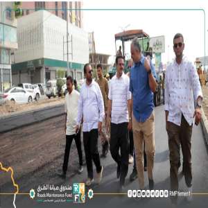 برفقة الداؤودي.. الماس يطلع على أعمال سفلتة الجهة اليسار من طريق السفينة ـ الكثيري في عدن