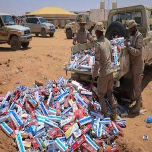 درع الوطن تتلف 22,000 باكت سجائر مهربة في منفذ الوديعة