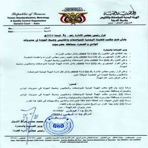قرار وزاري بانشاء مكتب لهيئة المواصفات في سيئون - الوادي والصحراء بحضرموت