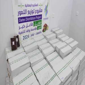 أستفاد منها 500 أسرة.. مؤسسة روافد للتنمية توزع التمور ضمن مشروع توزيع التمور