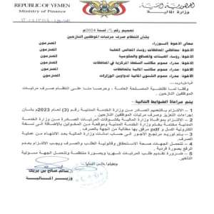 وزارة المالية تعلن إطلاق تعزيزات مرتبات موظفي القطاعين المدني والعسكري