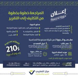 مركز القطيبي للتدريب والاستشارات يعلن عن إقامة دورة تدريبية خاصة بالمراجعة المالية