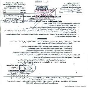 محافظ العاصمة عدن يصدر قراراً بتعيين قيادة جديدة لوحدة حماية الأراضي