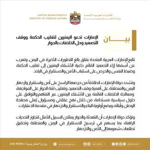 الإمارات تدعو إلى وقف التصعيد وتغليب لغة الحوار