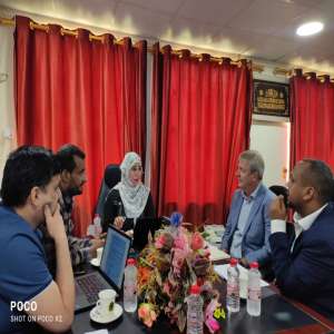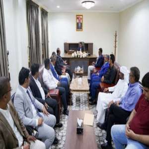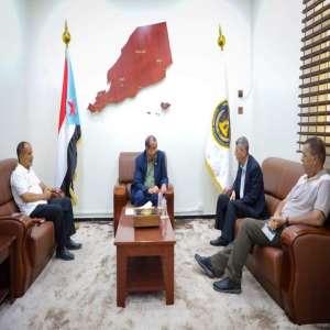 المحافظ عبدالرحمن شيخ يناقش مع ممثل جمعية العون المباشر الكويتية سير المشاريع التي تنفذها الجمعية في العاصمة عدن