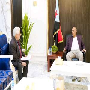 المحافظ عبدالرحمن شيخ يناقش مع ممثل جمعية العون المباشر الكويتية سير المشاريع التي تنفذها الجمعية في العاصمة عدن