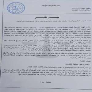 إدارية النقابة العامة لمنتسبي السلطة القضائية تلوح بالتصعيد