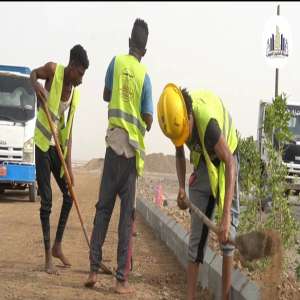 تمهيدا لإكمال السفلتة في شوارع مدينة الخليج العربي تواصل عملية فرش طبقة البسكرس وتشجير الرصيف