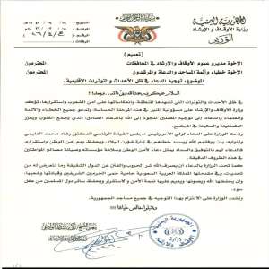 تعميم من الأوقاف إلى المساجد: الدعاء لقيادة الدولة والدول الشقيقة في ظل التوترات الإقليمية