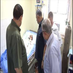 معاون والشعيبي يطمئنان على الحالة الصحية للبائع الذي أضرم النار في جسده بالشيخ عثمان
