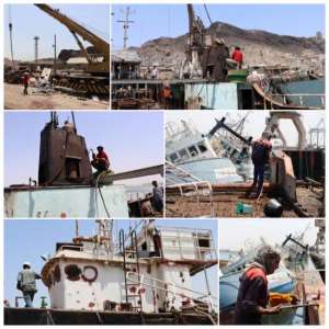 إنتشال السفن الغارقة في ميناء الإصطياد السمكي بعدن