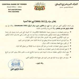 إعلان مزاد رقم (21-2023) لبيع عملة أجنبية