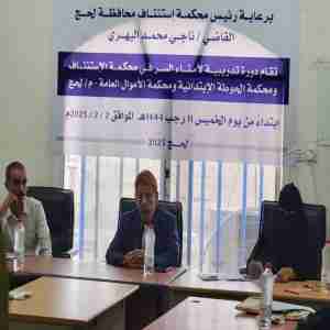 رئيس محكمة استئناف لحج مخاطباً المشاركين : ترجموا معارف الورشة لرفع وتيرة الأداء وصيانة حقوق الناس بكل نزاهة وإخلاص