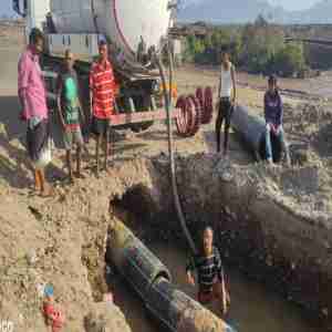 فرق الصيانة بمؤسسة المياه بعدن تجري أعمال صيانة لخط المياه الرئيسي في كالتكس بالمنصورة