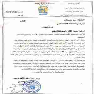 نقابة النقل الثقيل بعدن تدعو المحافظ لملس إلى التحرك لإيقاف قرار زيادة رسوم نقل البضائع بنسبة 40%