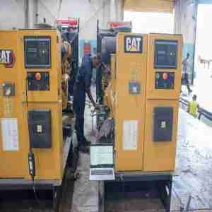 فريق هندسي يجري تجربة تشغيل محركات الحاضنات المطاطية في محطة عدن للحاويات