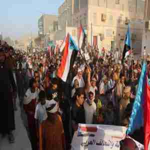 منطقة العقاد بالقطن تغضب وتخرج بمسيرة جماهيرية حاشده ضد تواجد المنطقة العسكرية بوادي حضرموت