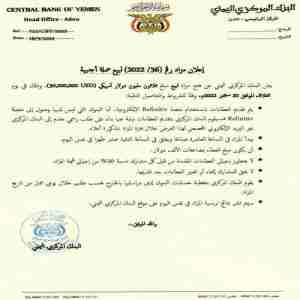 إعلان مزاد رقم (36-2022) لبيع عملة أجنبية
