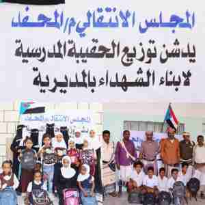 بدء توزيع الحقائب المدرسية على أبناء الشهداء في المحفد