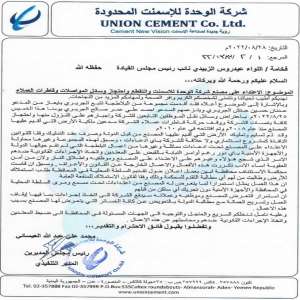شركة أسمنت الوحدة بأبين توجه مذكرة إلى نائب رئيس مجلس القيادة الرئاسي