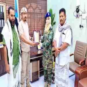 قائد محور أبين العميد مختار النوبي يُكرم الملازم أول طيار رحمة الحوشبي