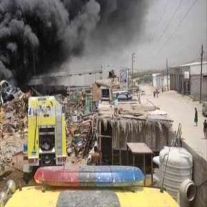 اندلاع حريق هائل بأحد مواقع السيارات الخردة في المكلا