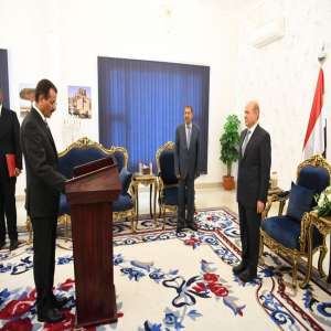 رئيس المحكمة العليا يؤدي اليمين القانونية امام رئيس مجلس القيادة الرئاسي