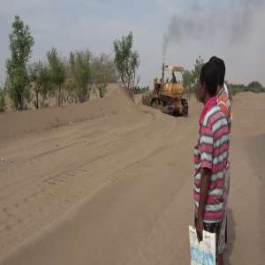 إزاحة الرمال المتحركة في خط مغرس ناجي بمديرية تبن لحج