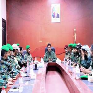 أركان الحزام الأمني يترأس اجتماعاً هاما لقادة الاحزمة ومدراء الادارات