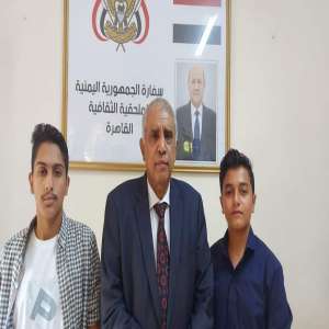 المستشار الثقافي في سفارة اليمن بالقاهرة يكرم طلبة مدرسة سماء عدن المشاركين في البطولة العربية للروبوت