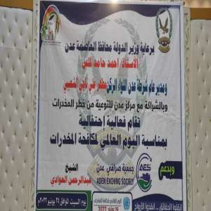حفل خطابي وتوعوي بمناسبة اليوم العالمي لمكافحة المخدرات بالعاصمة عدن