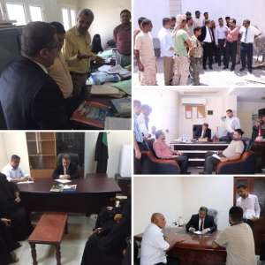 وزير العدل يزور محكمة التواهي الابتدائية وشعبة الأموال العامة بعدن