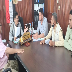 مدير عام البريقة يناقش تنفيذ مشروع الإستجابة السريعة للنازحين بالمديرية